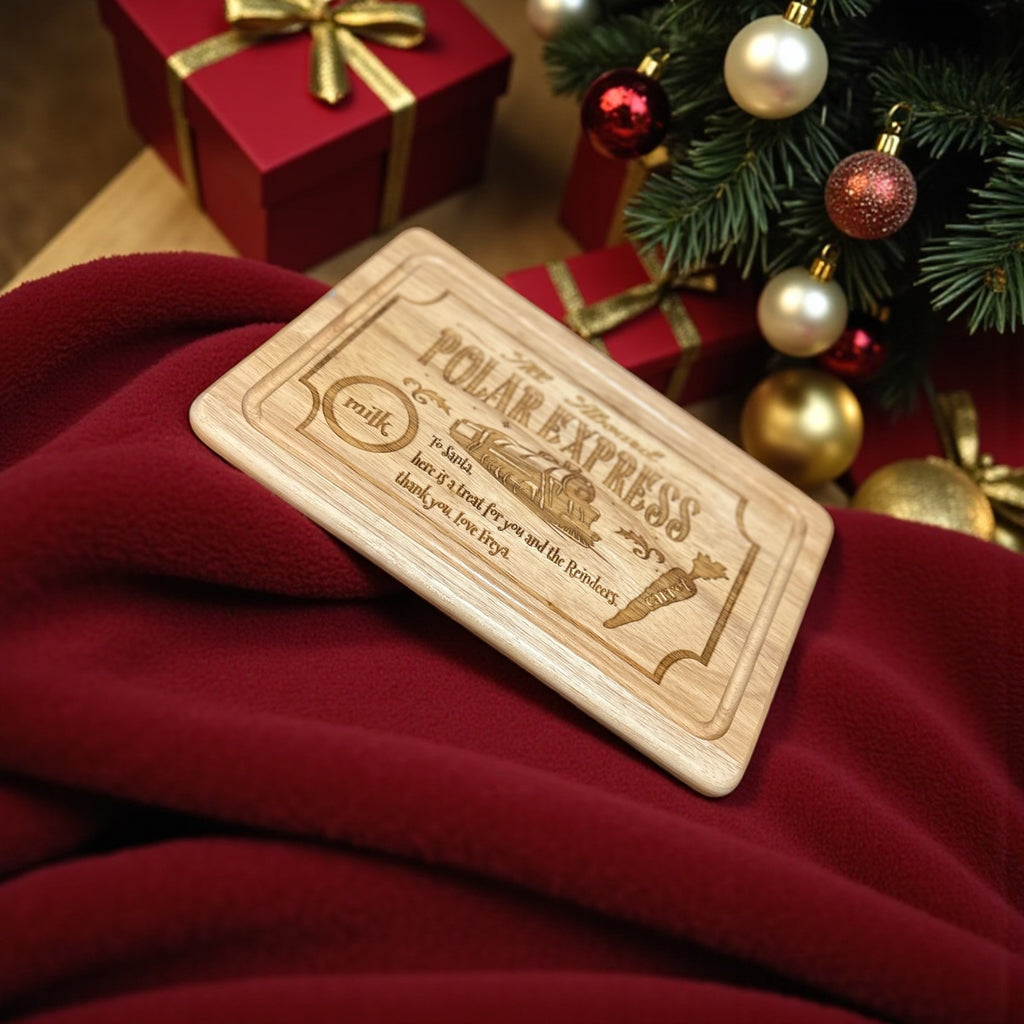 Each board is made from high-quality pine wood and laser engraved with charming Polar Express detailing — complete with spaces marked for Santa’s treat, his drink, and a little nibble for the reindeer. It’s a keepsake that your family will treasure and reuse year after year.✨