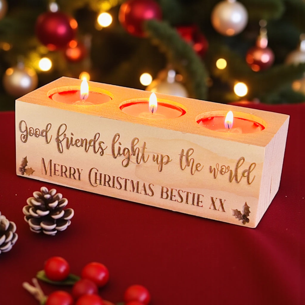 Create a warm and festive glow this Christmas with our beautiful wooden tealight candle set, engraved with your personalised message to make it truly unique.