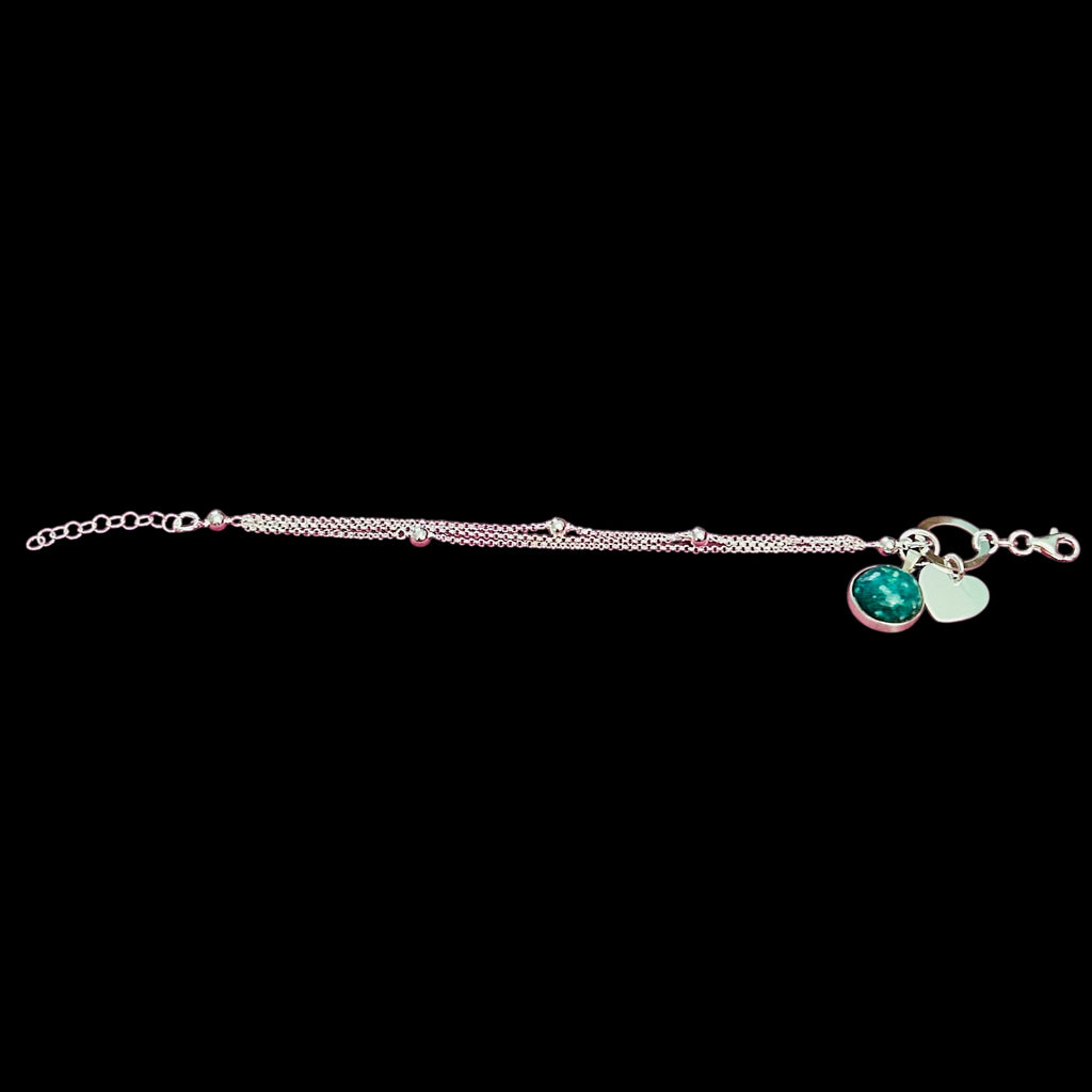 The pendant and heart charm are attached to the large silver link on the bracelet. The strands of the bracelet have small sterling silver balls which give a luxurious look.